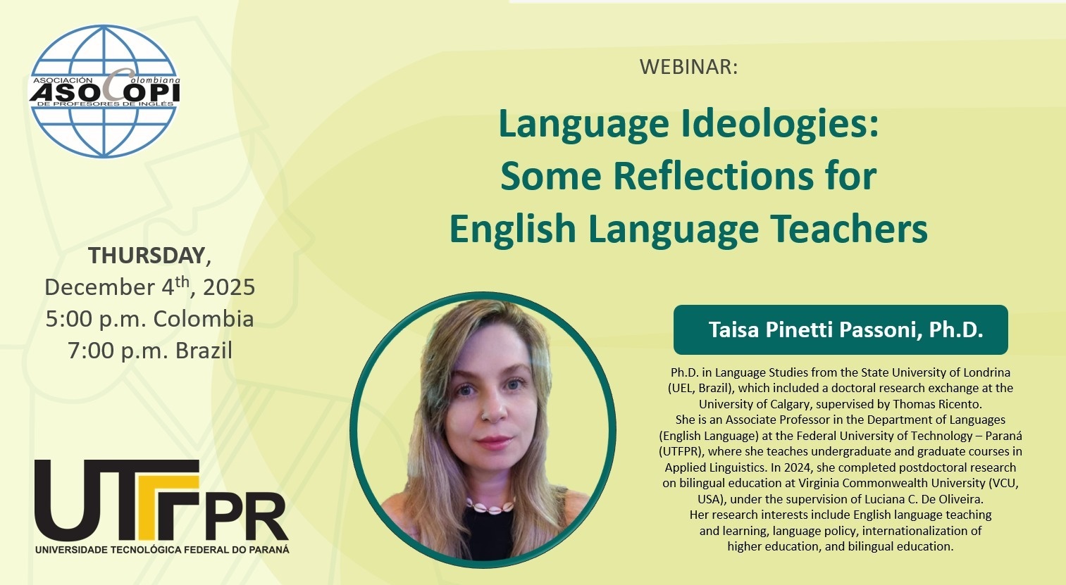 holds a Ph.D. in Language Studies from the State University of Londrina (UEL, Brazil), which included a doctoral research exchange at the University of Calgary, supervised by Thomas Ricento. She is an Associate Professor in the Department of Languages (English Language) at the Federal University of Technology – Paraná (UTFPR), where she teaches undergraduate and graduate courses in Applied Linguistics. In 2024, she completed postdoctoral research on bilingual education at Virginia Commonwealth University (VCU, USA), under the supervision of Luciana C. De Oliveira. Her research interests include English language teaching and learning, language policy, internationalization of higher education, and bilingual education.